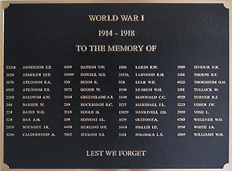 ![]() RSL Tumby Bay Sub-Branch WW1 Memorial Plaque |