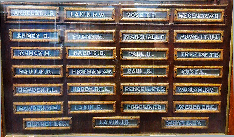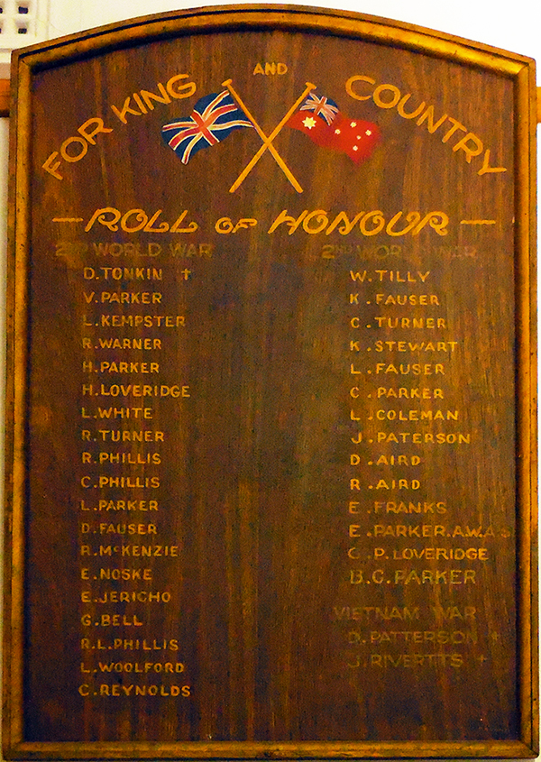 The Honour Boards and the Memorials for the district are shown in this section. Many of the boards are now displayed in the RSL Tumby Bay as the population in areas where they were originally displayed has decreased markedly, resulting in the buildings in which they displayed being used for other purposes. | |||