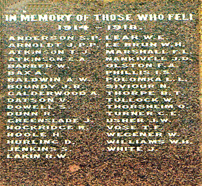 ![]() RSL Tumby Bay WW1 Honour Roll |