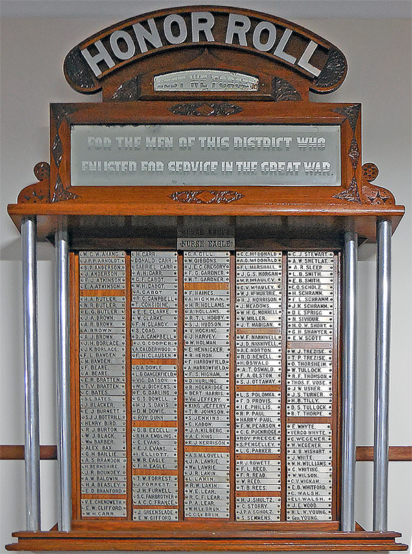 The Honour Boards and the Memorials for the district are shown in this section. Many of the boards are now displayed in the RSL Tumby Bay as the population in areas where they were originally displayed has decreased markedly, resulting in the buildings in which they displayed being used for other purposes. | |||