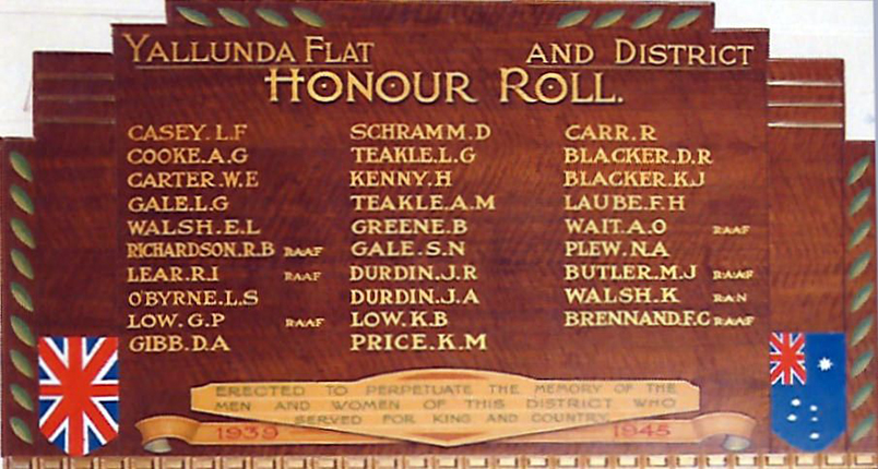 ![]() Yallunda Flat & Kopio District WW1 Honour Roll |