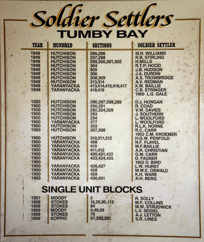 The Soldier’ Settlers Scheme was a great boost to our region. Many of the returned service people who appear in our Portraits Memorial were not originally from the district, but moved here after their return from active service to take up Soldier Settlers blocks. | |||||